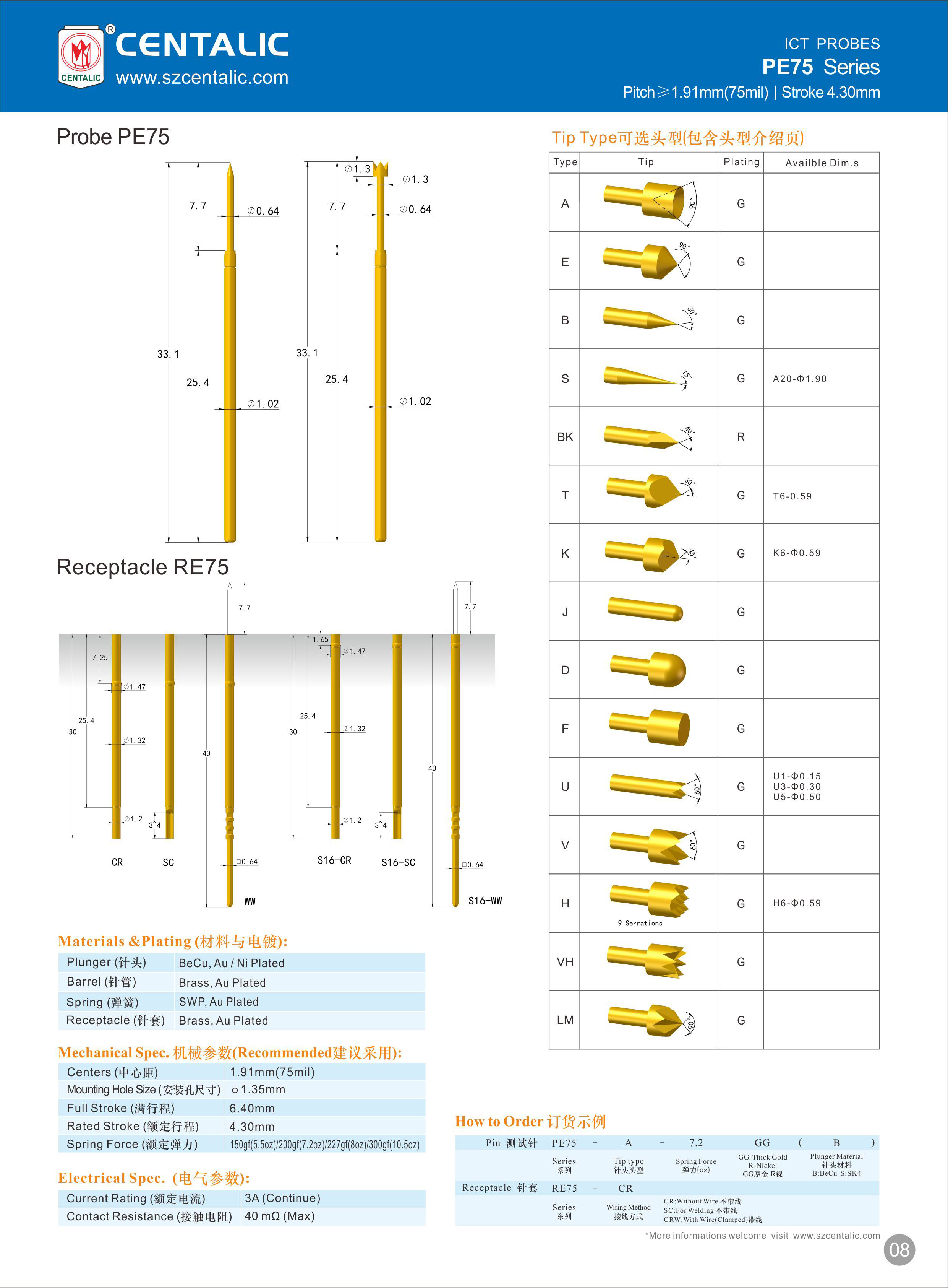 ICT probe mainly used for in-circuit testing and functional testing, detecting the electrical performance of in-circuit components and the connection of circuit networks. They are able to quantitatively measure and perform functional testing on components.
