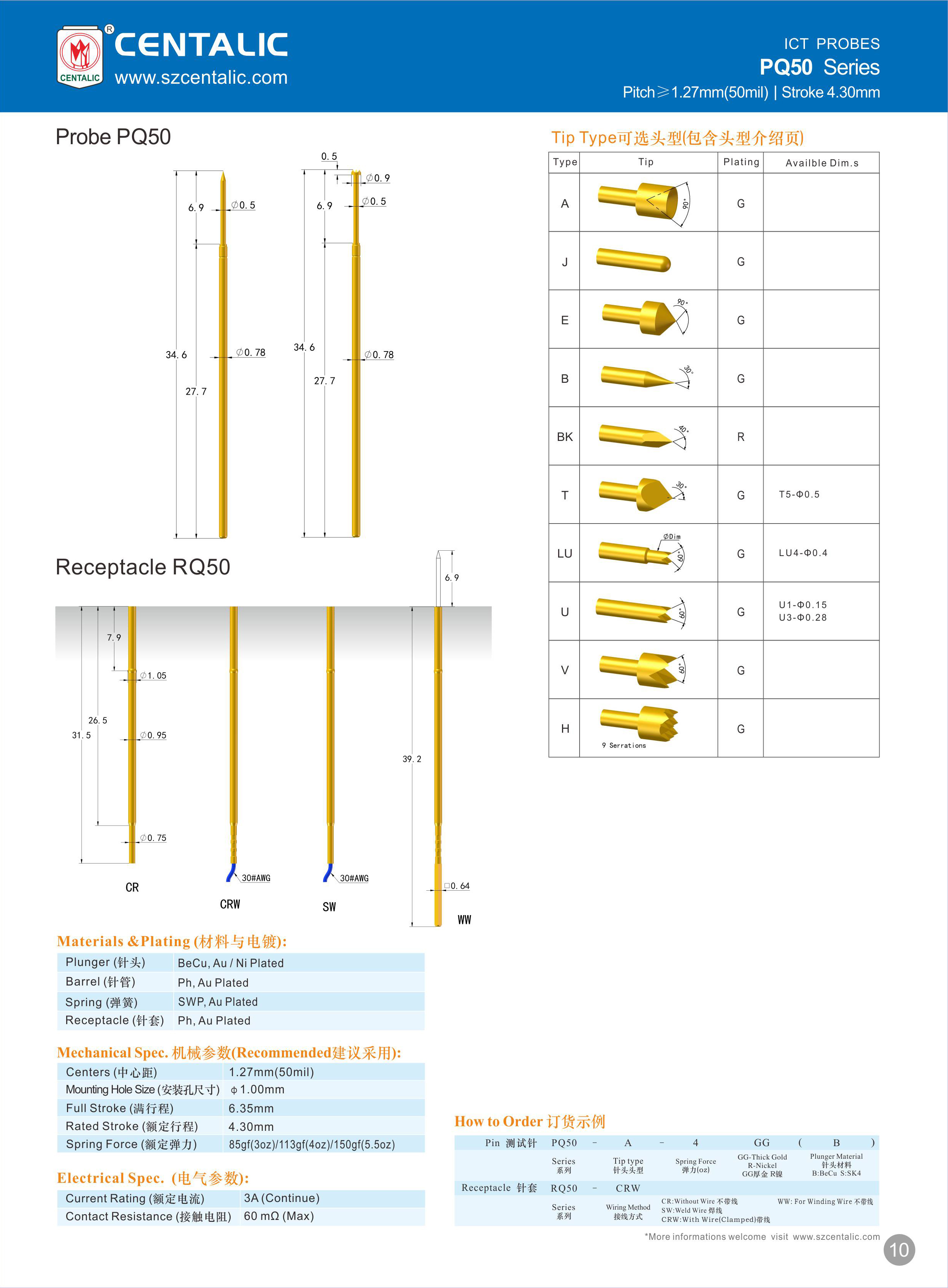 ICT probe mainly used for in-circuit testing and functional testing, detecting the electrical performance of in-circuit components and the connection of circuit networks. They are able to quantitatively measure and perform functional testing on components.