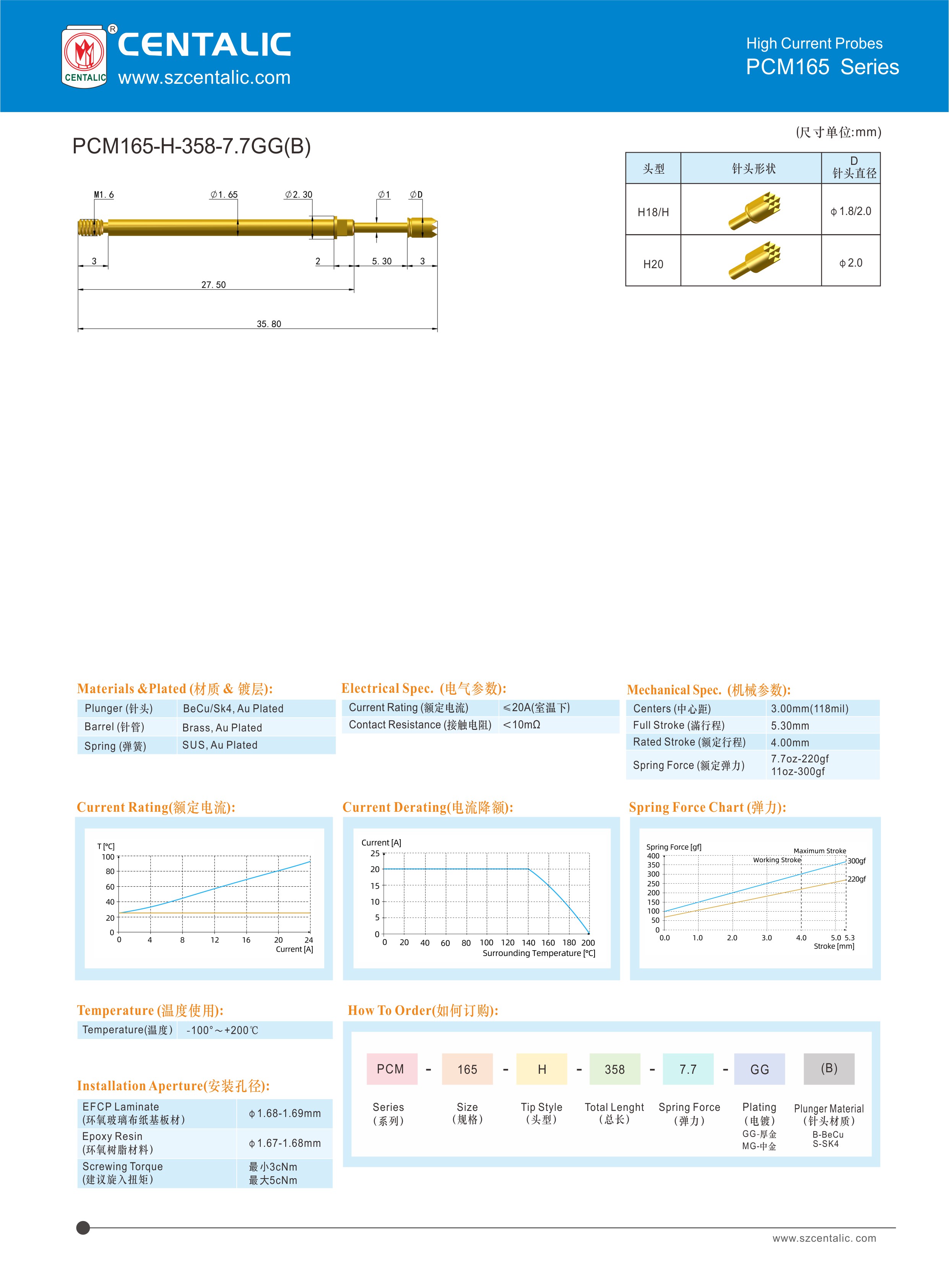 针头(Plunger):BeCu/SK4,Au Plated