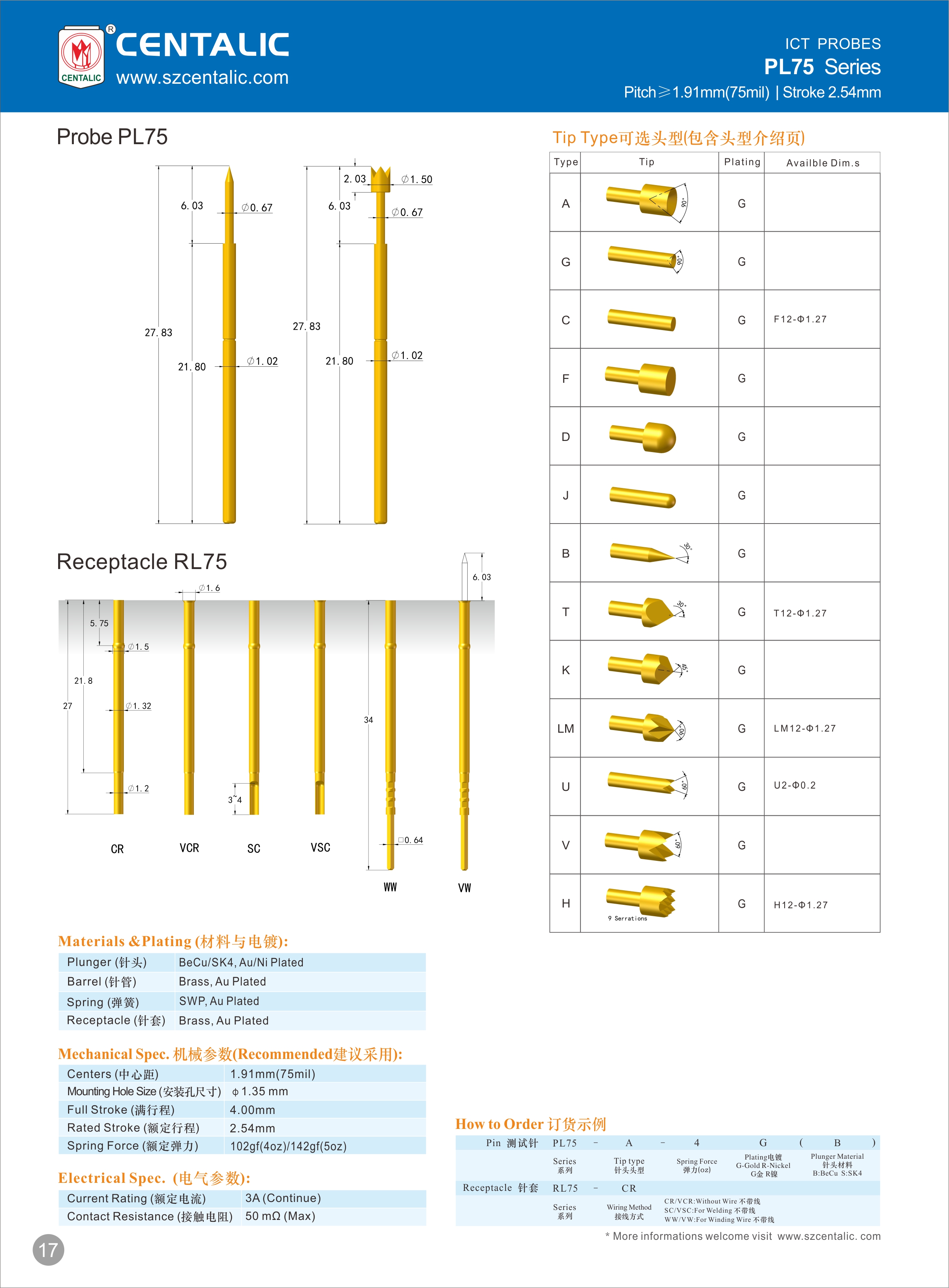 针头(Plunger):Becu/SK4,Au/Ni Plated