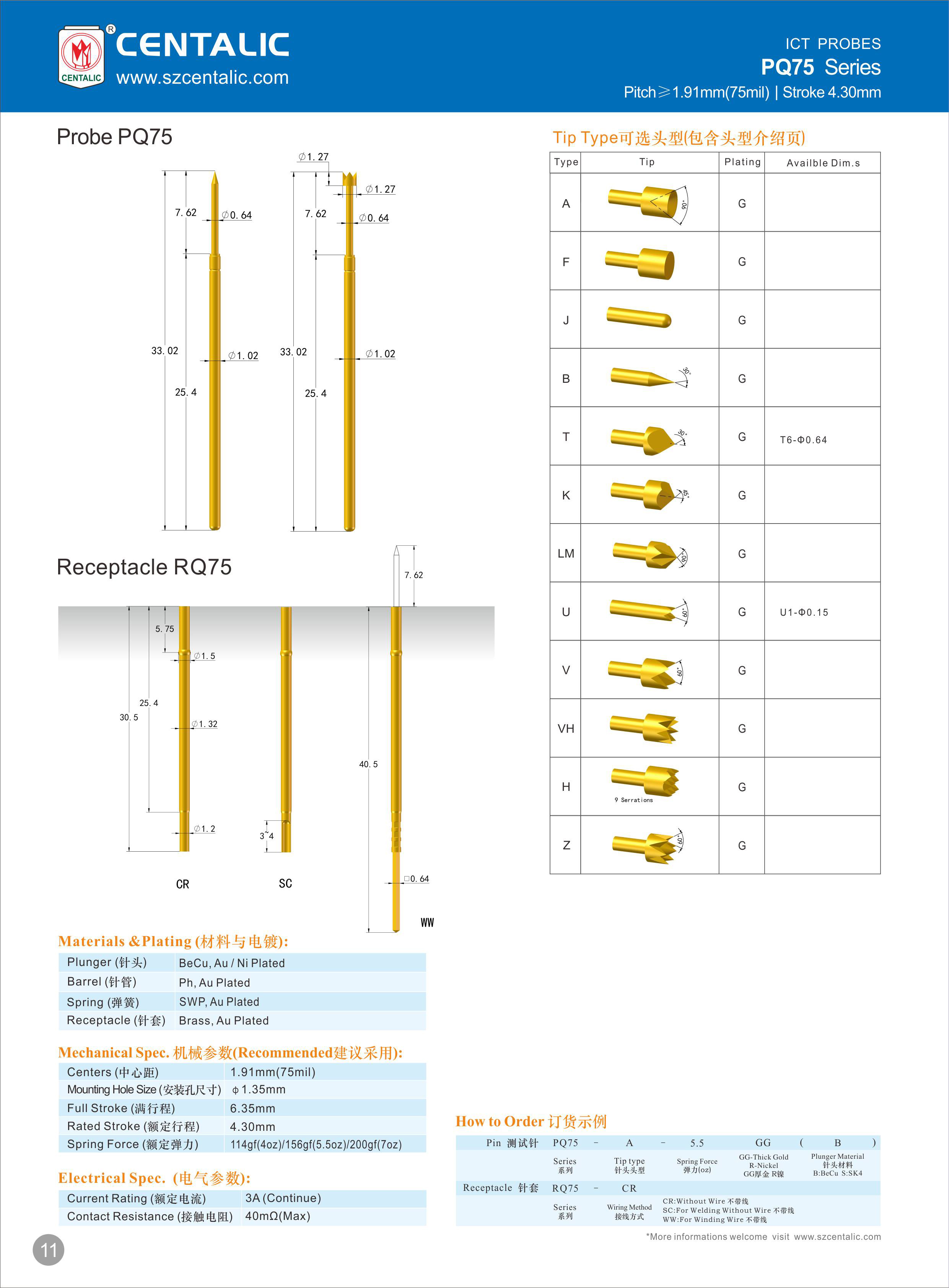ICT测试针又称“ICT在线测试针”。主要用于:在线电路测试及功能测试,检测制成板上在线元器件的电气性能和电路网络的连接情况,能够定量地对元器件进行测量及进行功能测试。